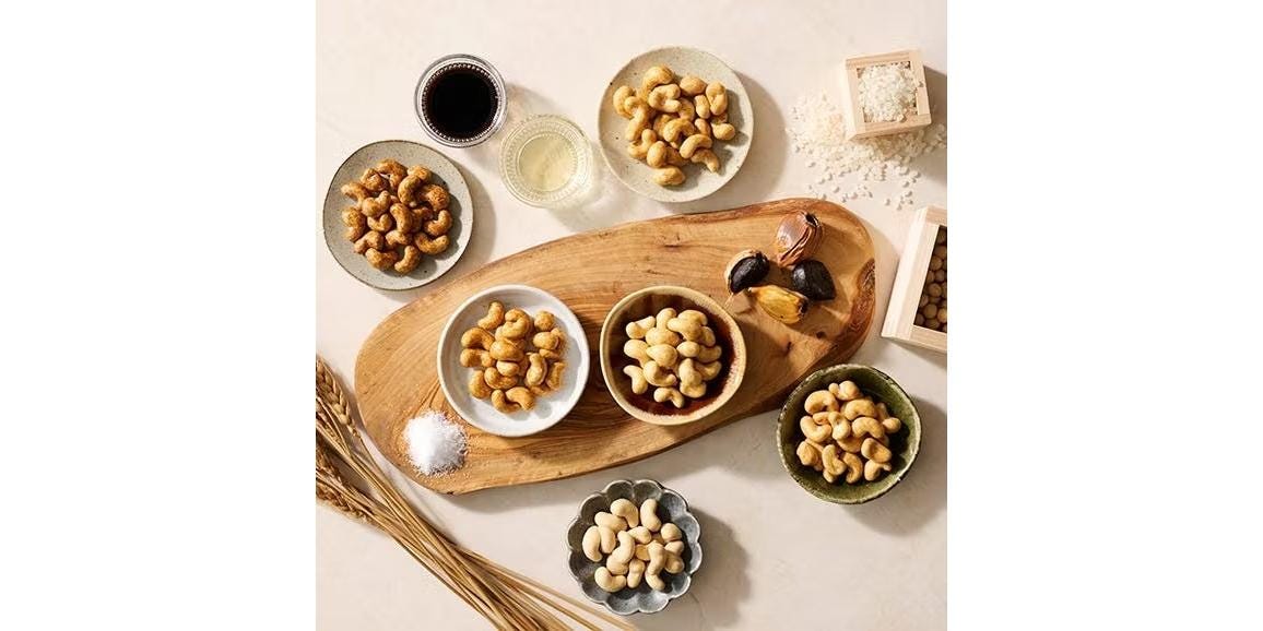 創業百有余年を誇る6つの老舗醤油醸造所と共同開発した「衣焼カシュ―ナッツ」。