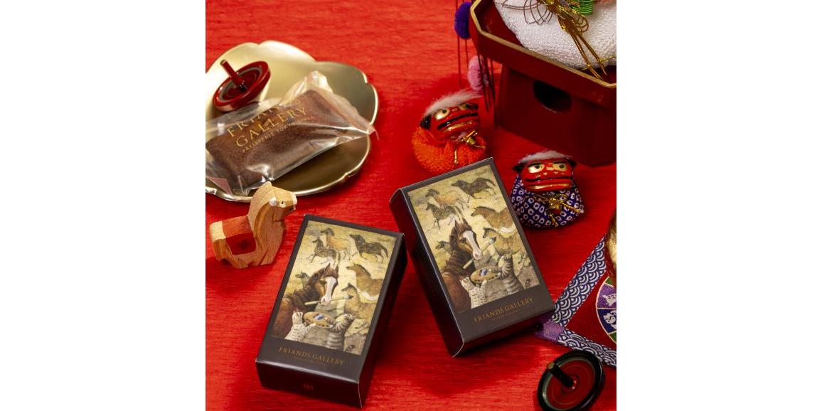 画家・松本亮平の書き下ろし、2026年の干支「午」が描かれた限定パッケージ。塩のほのかなアクセントがバターの香りを引き立てる大人気の「塩バター・フィナンシェ」。やさしい甘さと深いコク、上品な輪郭。大切な方へのお正月の挨拶、お年賀に是非ご利用くださいませ。