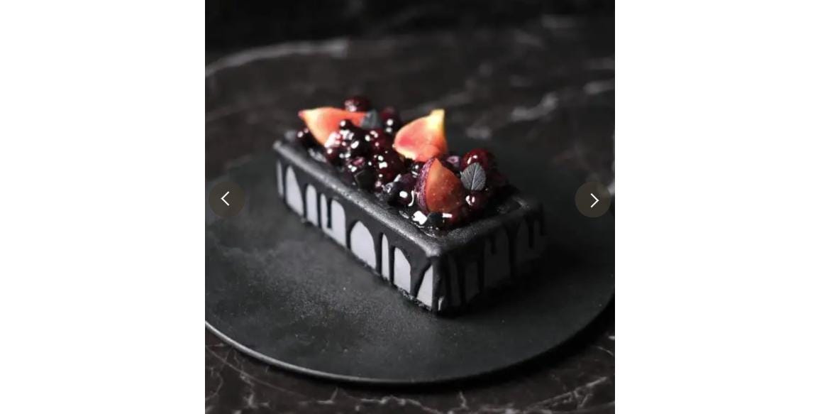 ブラックパリのイメージカラーである黒を模したフルーツをふんだんに使いました。チョコレートを垂らし、見ているだけで食欲を刺激するような宝石のような仕上げにしております。メインのチーズケーキはフロマージュブランを使ったさっぱりとしたレアチーズケーキにしており、どんどん食べ進んでしますような仕上がりになっております。