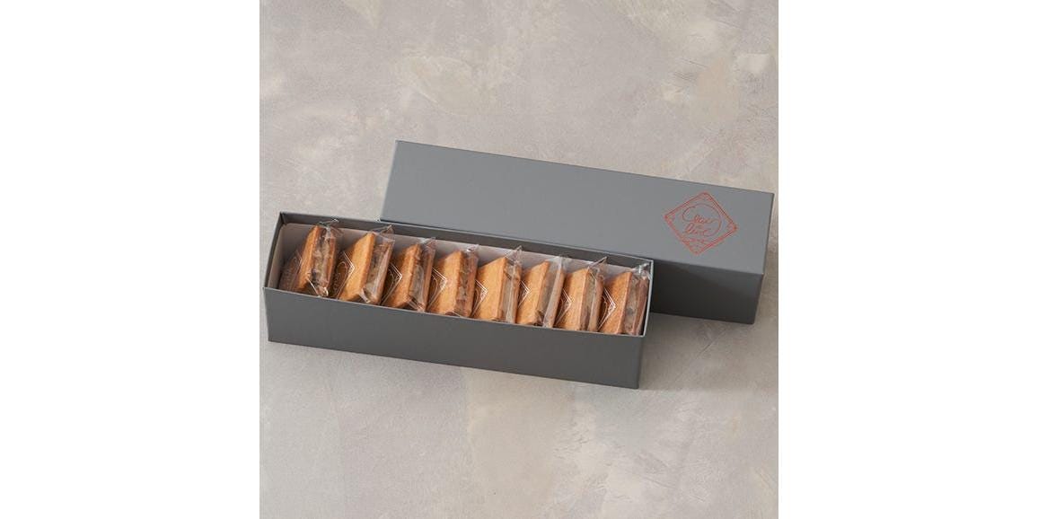 発酵バタークリームをたっぷりと挟んだ、贅沢なバターサンドの詰め合わせ。それぞれ、「ミルクティー」は紅茶の風味とまろやかな味わい、「ミモレット」はミモレットチーズの風味、「ピスタチオ・クランベリー」はピスタチオの風味とクランベリーの甘酸っぱさ、「プラリネナッツ」はキャラメルコーティングしたアーモンドの食感と風味、「ラムレーズン」は洋酒漬けレーズンの風味、「ショコラ」はビターチョコの程よい苦味を楽しむことができます。6種類を各種1個ずつ詰め合わせており、ギフトにも人気の一品です。