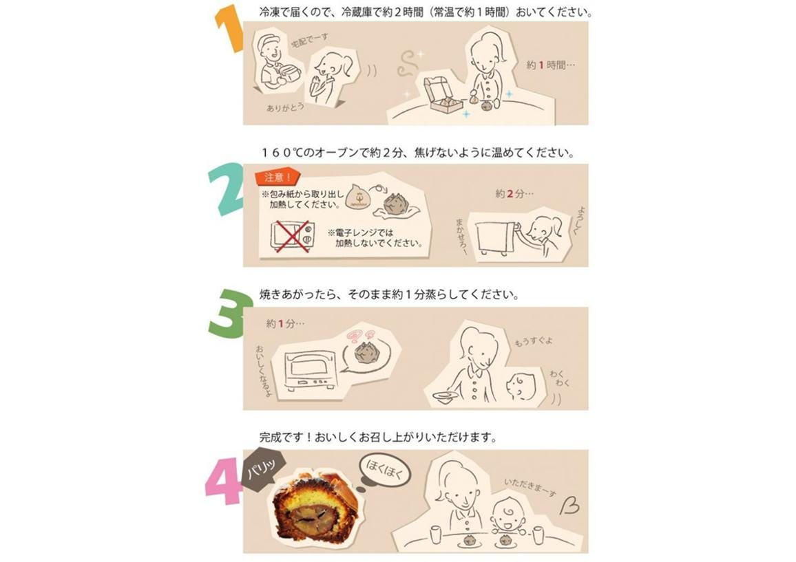 冷蔵庫で2時間または常温で1時間解凍後 “オーブンで2~3分温めると” アーモンドプールの香りと栗の香りを感じられ、更により一層美味しくいただます!