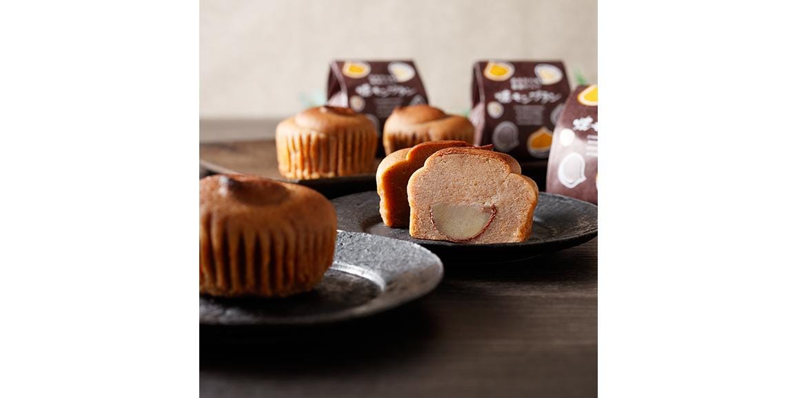 京都限定の焼きモンブランの特徴は、小麦粉を使わず、渋皮付栗をマロンペーストで包み込みしっとりと焼き上げたところです。コーヒーやお茶でもよく合う和洋折衷、栗の風味豊かな限定の焼きモンブランに、お抹茶の香り豊かな抹茶餡とふっくら小豆をふんだんに使った、抹茶焼きモンブランが加わりました!