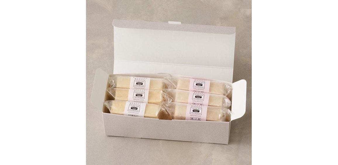 徳島県創業のHIDEKURA MARKETのスペシャリテは、阿波和三盆糖と米粉を使用したグルテンフリーの「テリーヌ・フロマージュ」。