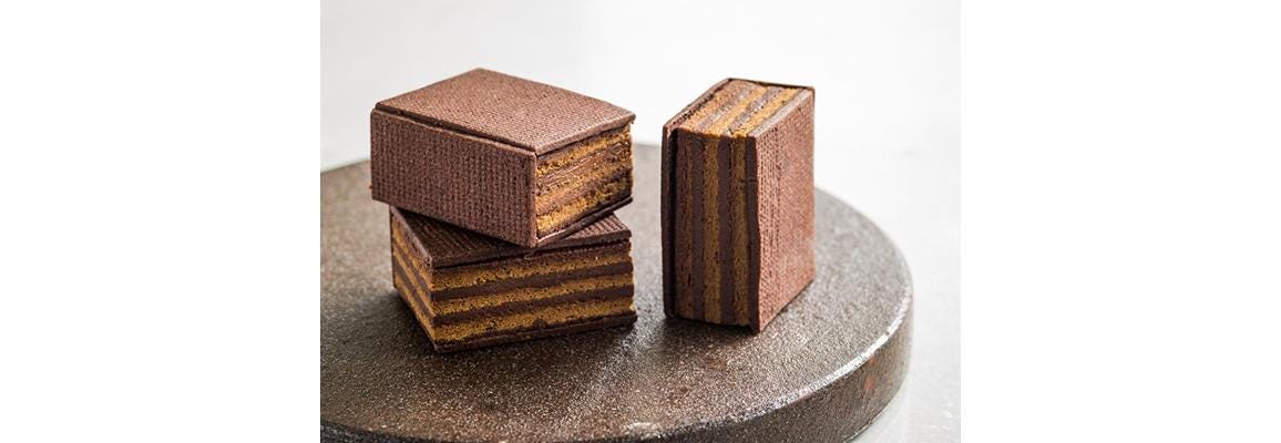 濃厚なチョコレートケーキ「オペラ」を、ビターなコーヒー風味のサブレでサンドした「オペラサンド」