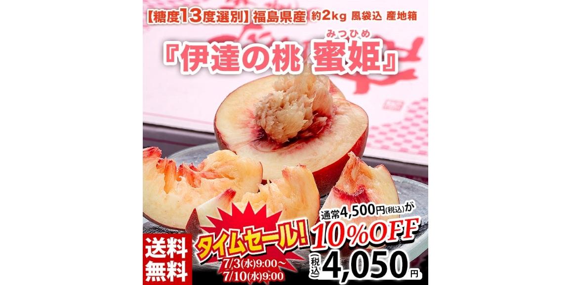 7月10日までタイムセール実施中!【糖度13度選別】『伊達の桃 蜜姫(みつひめ)』