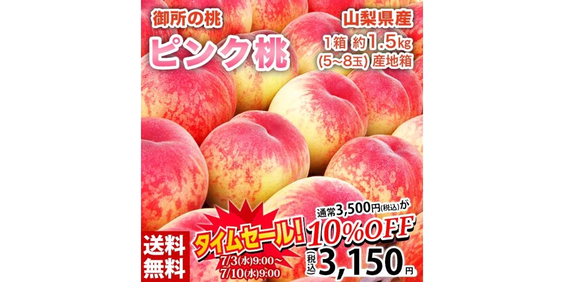 タイムセール実施中!7月10日まで!御所の桃 ≪ピンク桃≫ 山梨県産 1箱 約1.5kg