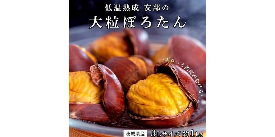 低温熟成栗 ぽろたん 大粒 3~4Lサイズ 約1kg 茨城県産 笠間(友部) 簡易箱