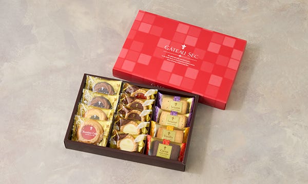 - ロシアケーキ(リッチビター×2、フラワーキウイ×1、マカロンストロベリー×1)、プチガトー(ストロベリー×1、ミルクチョコ×2、ホワイトチョコ×2)、サンドクッキー(セサミ×2、バニラ×1、ココア×1)