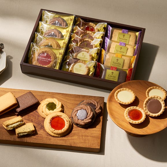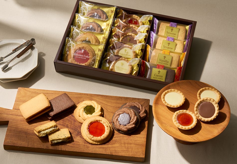 ロシアケーキならではの二度焼き製法で丁寧に焼き上げた生地にジャムやチョコをトッピングした「3種のロシアケーキ」、ひと口サイズのタルトにチョコやストロベリージャムを組み合わせた「3種のプチガトー」、さっくり焼き上げた3種類のサブレ生地に、しっとりとしたクリームをサンドした「3種のサンドクッキー」とバラエティ豊かな味わいが楽しめます。
