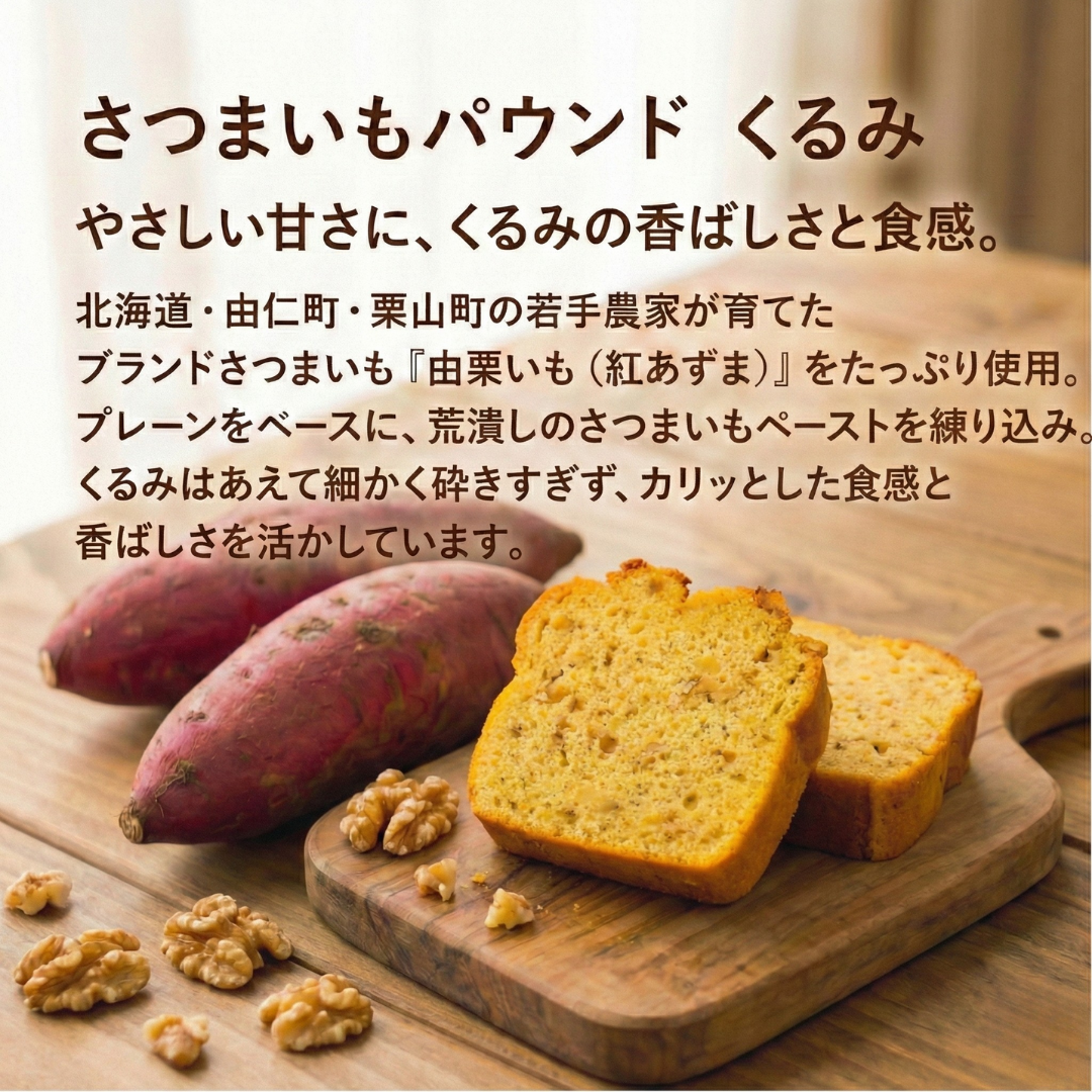 素材の個性を活かした彩り豊かなパウンドケーキを、贈り物やご自宅用にお楽しみください。