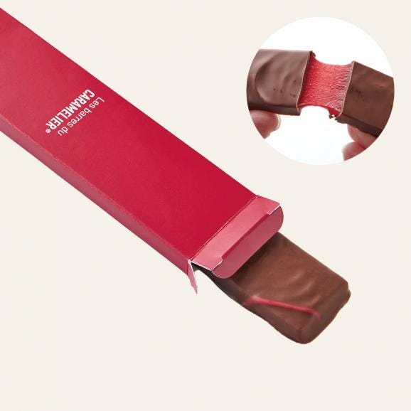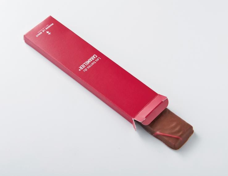メゾン・ルルー定番のキャラメルを薄くのばし、チョコレートをコーティング。