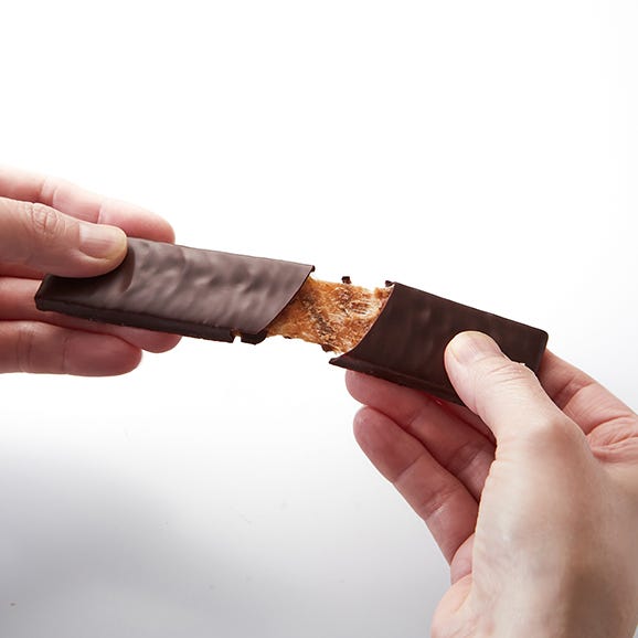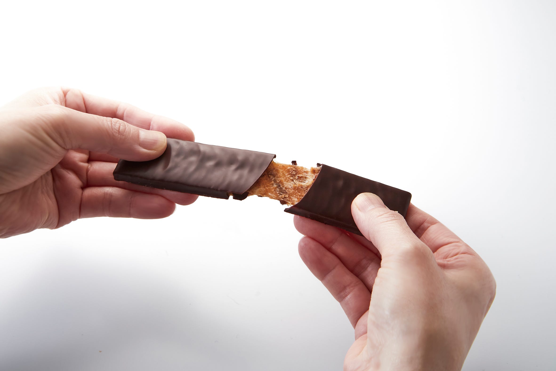 メゾン・ルルー定番のキャラメルを薄くのばし、チョコレートをコーティング。