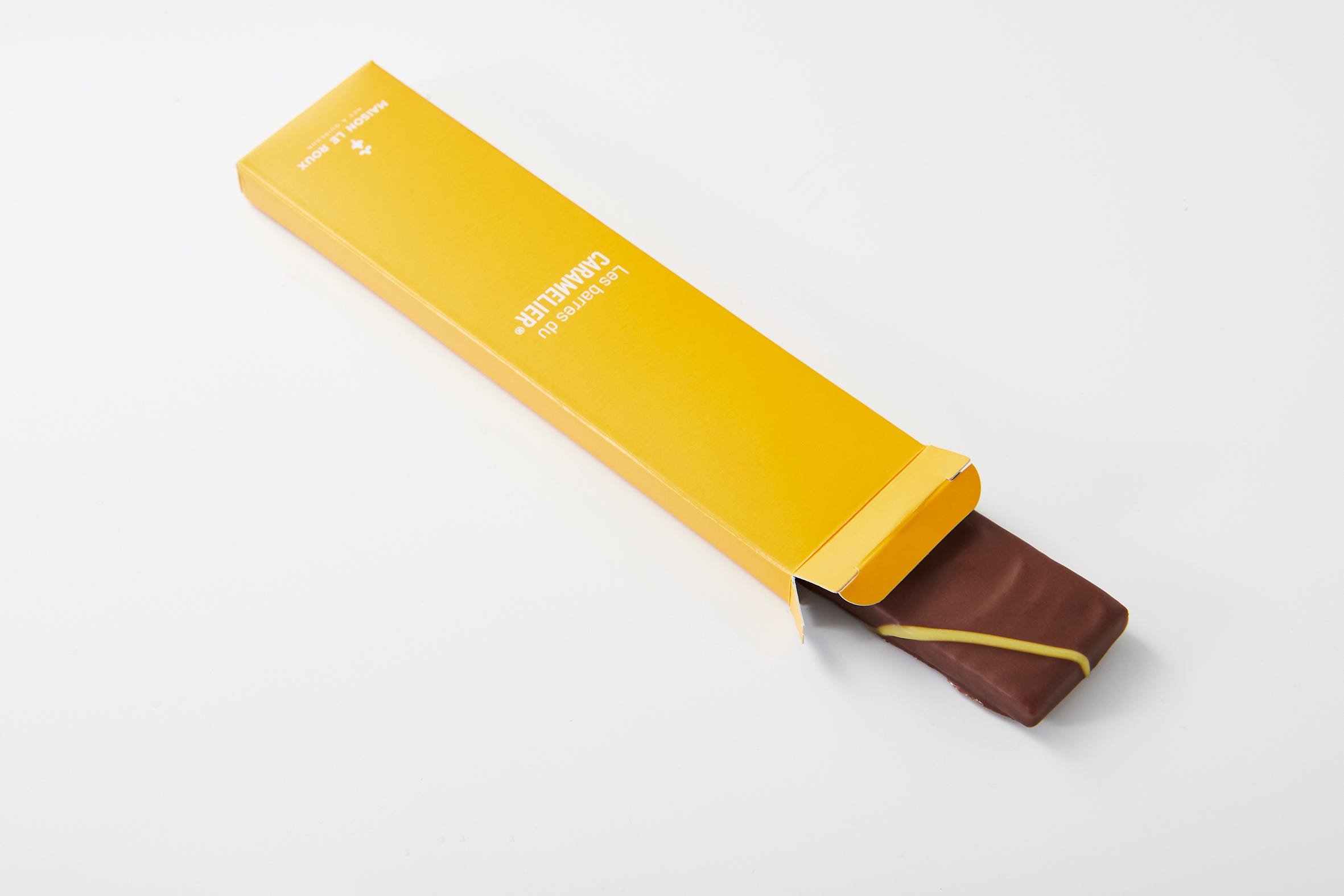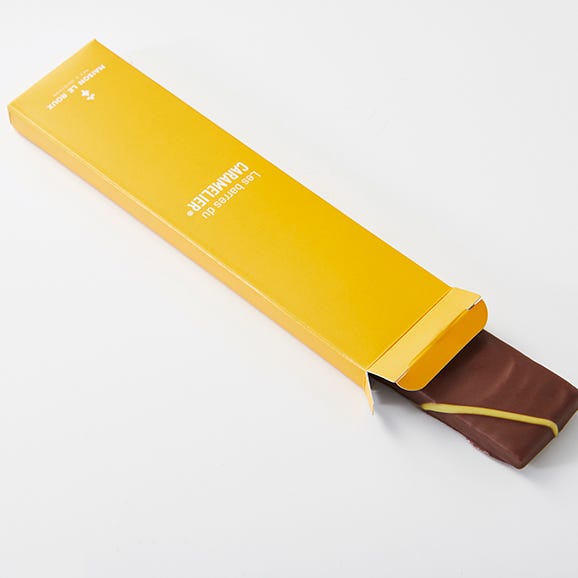 メゾン・ルルー定番のキャラメルを薄くのばし、チョコレートをコーティング。