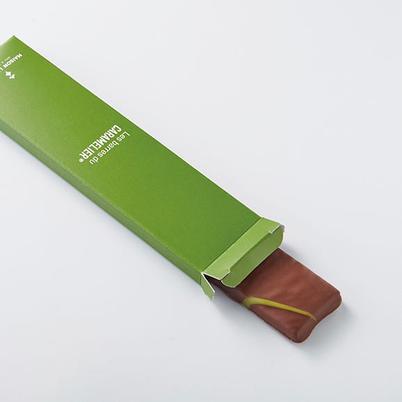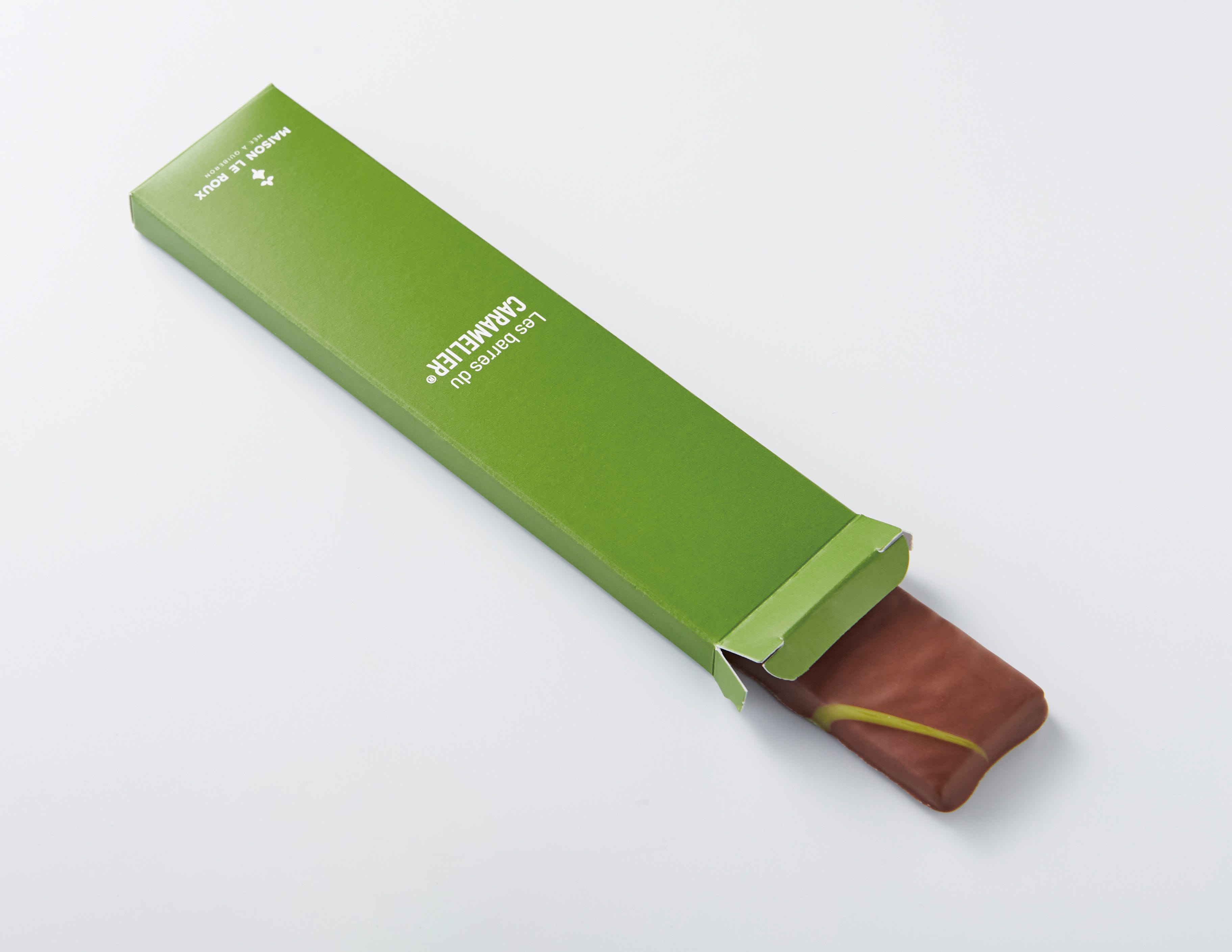 メゾン・ルルー定番のキャラメルを薄くのばし、チョコレートをコーティング。