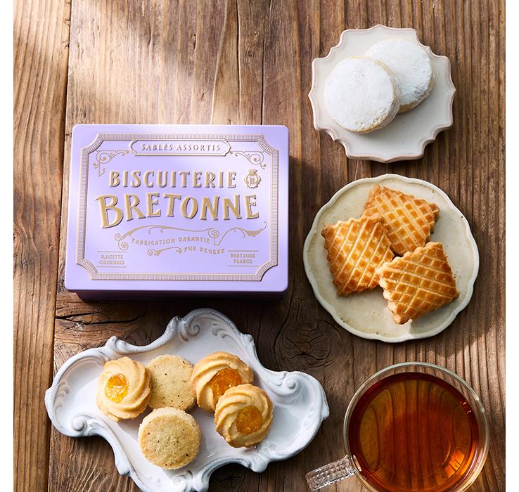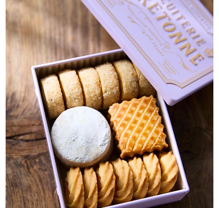 芳醇なバニラが香る「バニラ・フィアンティーヌ」や、発酵バターの風味豊かな「サブレ・ブルトンヌ パヴェ」、香り高いアールグレイにオレンジのアクセントを添えた「サブレ・アールグレイ」、アプリコットのコンフィチュールをしぼった繊細な食感の「アプリコット」の4種を、華やかなスミレ缶の色にとじ込めた、ティータイムにぴったりのクッキー缶です。