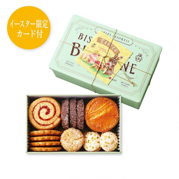 上記写真のように、缶に直接金色の紐を十字におかけし、イースター限定カードを添えてお届けします。