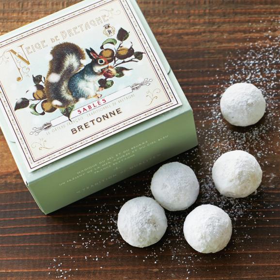 “ブルターニュに降る美しい雪”をイメージして丁寧に焼き上げた、真っ白な粉糖につつまれたクルミ入りクッキー。