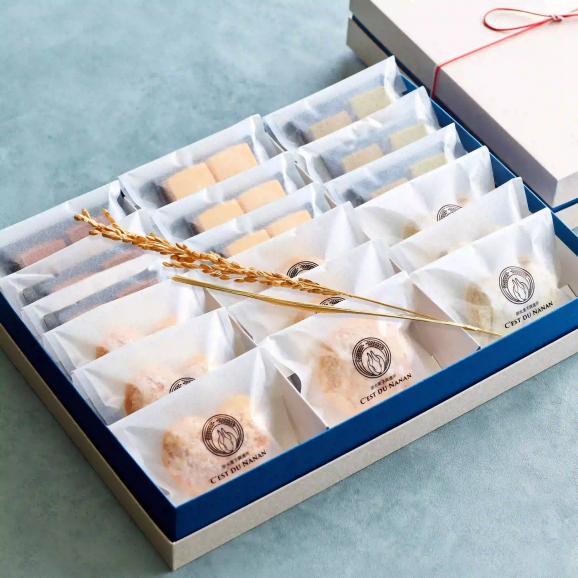 - ダックワーズ幻のきなこ3個、ダックワーズ有機抹茶3個、ダックワーズ棚田柚子3個、サブレナチュラル4粒×3袋、サブレショコラ4粒×3袋、サブレ有機青汁4粒×3袋 計18個