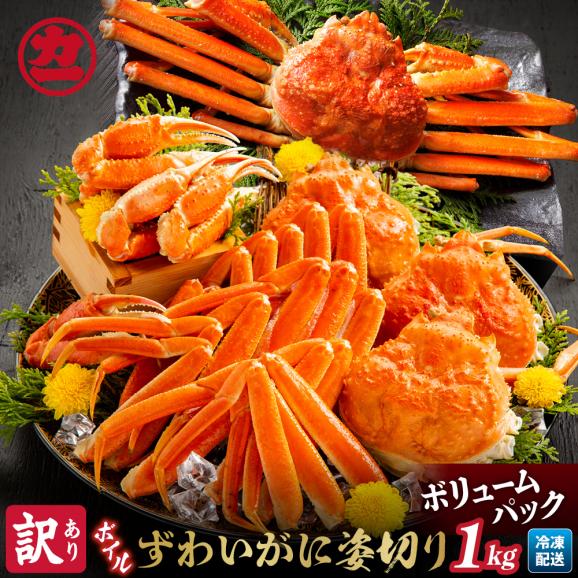 ボイルずわいがにをパーツに分けて1kg前後の大盛りパックにて仕上げました。