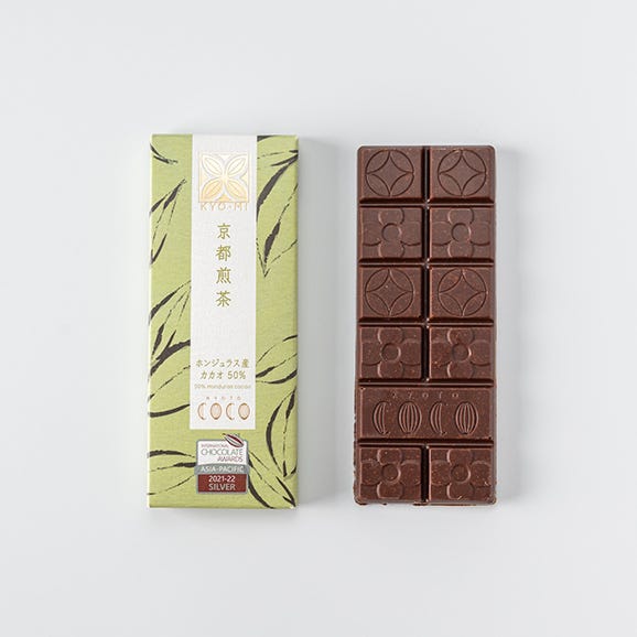 箱を開けた瞬間から煎茶の香りが広がり、ホンジュラス産カカオの軽やかな後味に