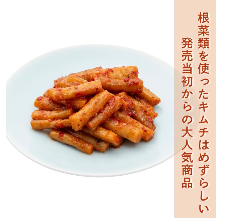 根菜類を使ったキムチはめずらしい、発売当初からの大人気商品!