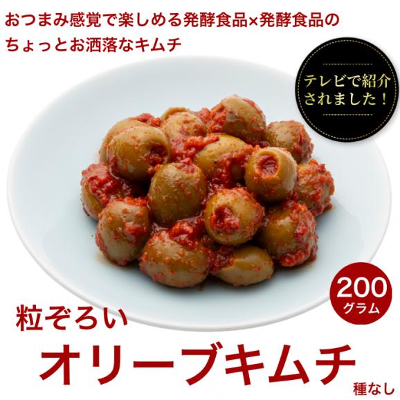 オリーブ(種なし)を粒ごと漬けた、ありそうでなかった発酵×発酵の組み合わせの新感覚キムチ。