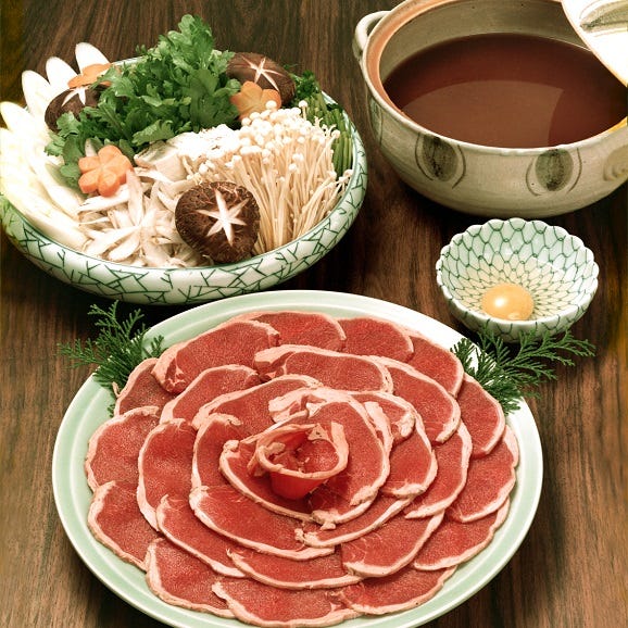 専用の味噌を溶いた出汁ににんにくと生姜を入れた“ぼたん鍋”は大変美味。山奥の方へ行かずとも本場のを。