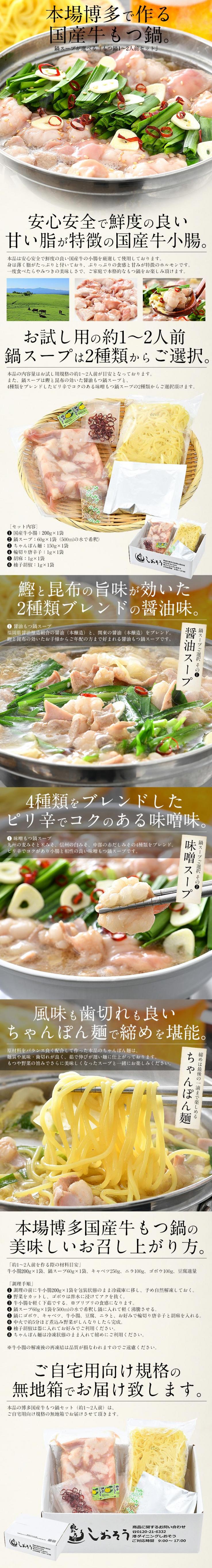 【本場博多 国産牛もつ鍋 1-2人前セット】