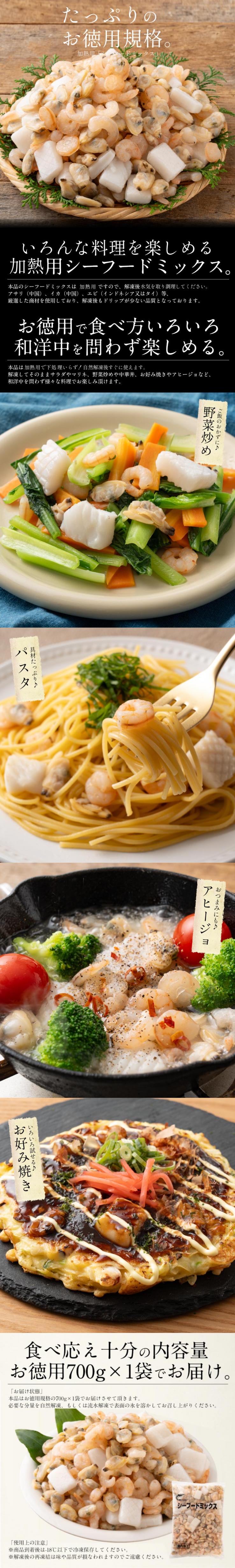 - 【内容量】700g 【原材料】ボイルあさり(中国)、 ボイルいか(中国)、ボイルえび(バナメイえび(インドネシア又はタイ))、食塩/pH調整剤 【お召し上がり方】解凍してそのままお召し上がりください 【賞味期限】商品ご到着から30日 【配送方法】冷凍便 【送料】無料