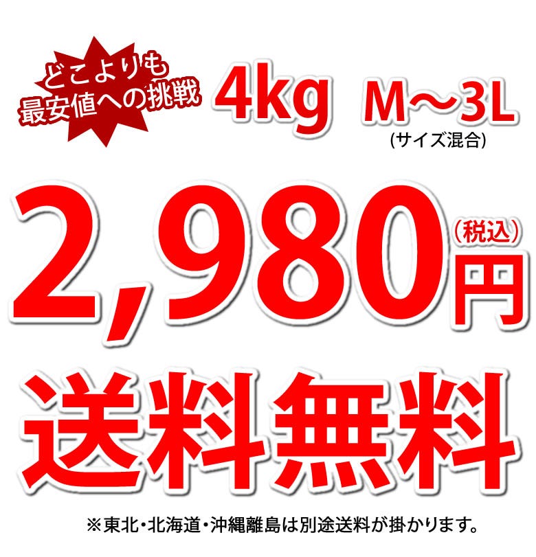 - 4kg(M〜3Lサイズ混合)