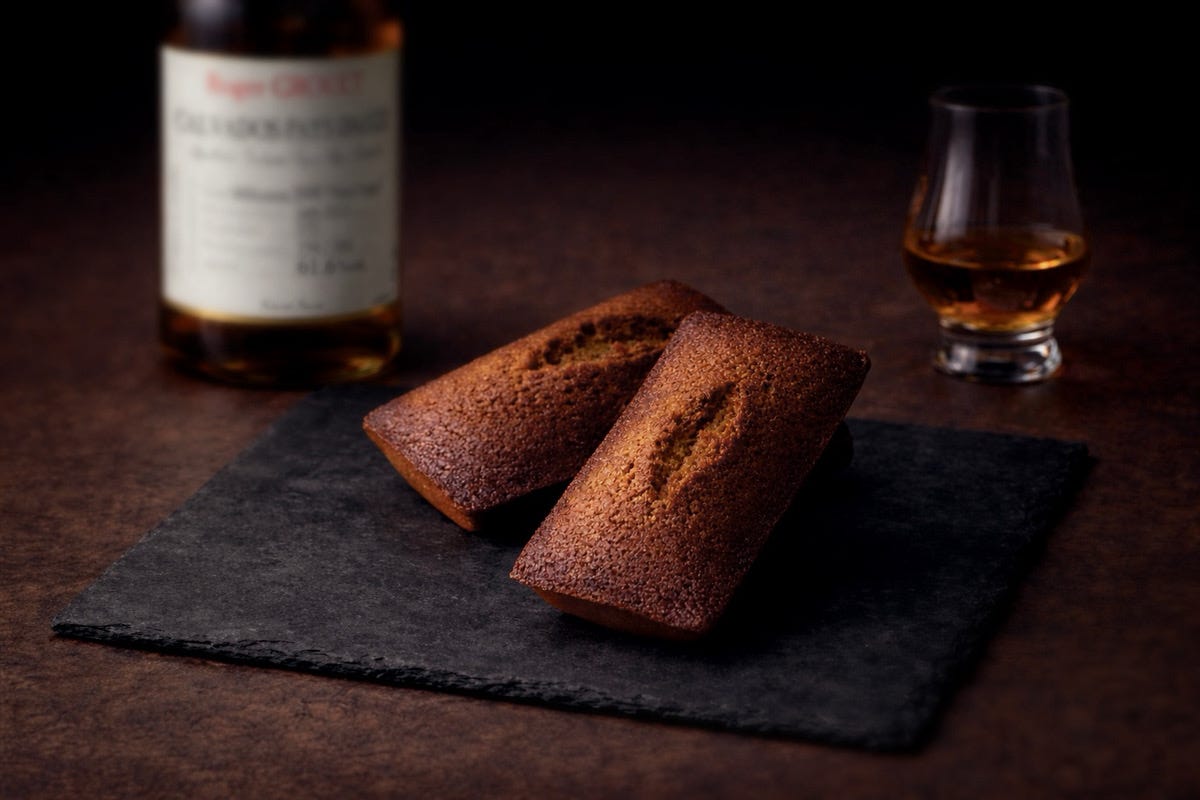 フランス・ノルマンディー地方で作られるりんごを原料とした蒸留酒「カルヴァドス」を使用した大人のフィナンシェ。果実由来のフルーティーで澄んだ香りと穏やかな熟成感、華やかで美しい余韻。