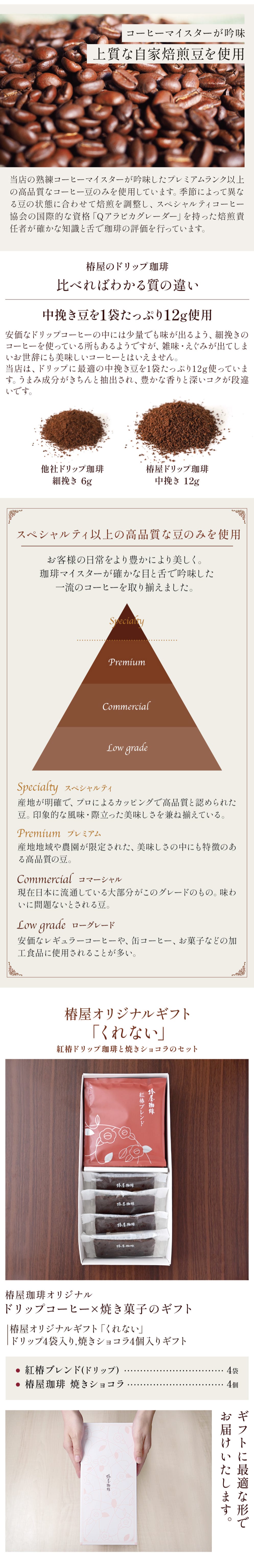 紅椿ブレンドと相性の良い焼きショコラをセットに!ブレイクタイムのおともにぴったりです。ちょっとしたプレゼントやお返しなどにぴったりな手頃なサイズ。