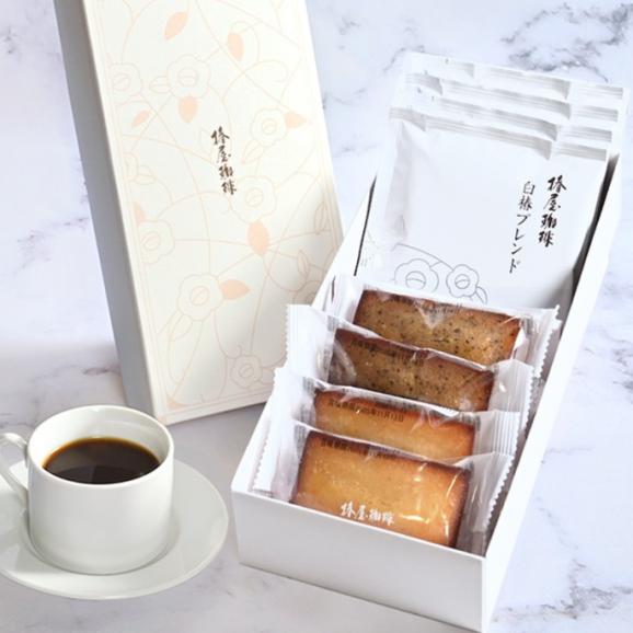 白椿ブレンドと相性の良いフィナンシェ2種をセットに!ブレイクタイムのおともにぴったりです。ちょっとしたプレゼントやお返しなどにぴったりな手頃なサイズ。