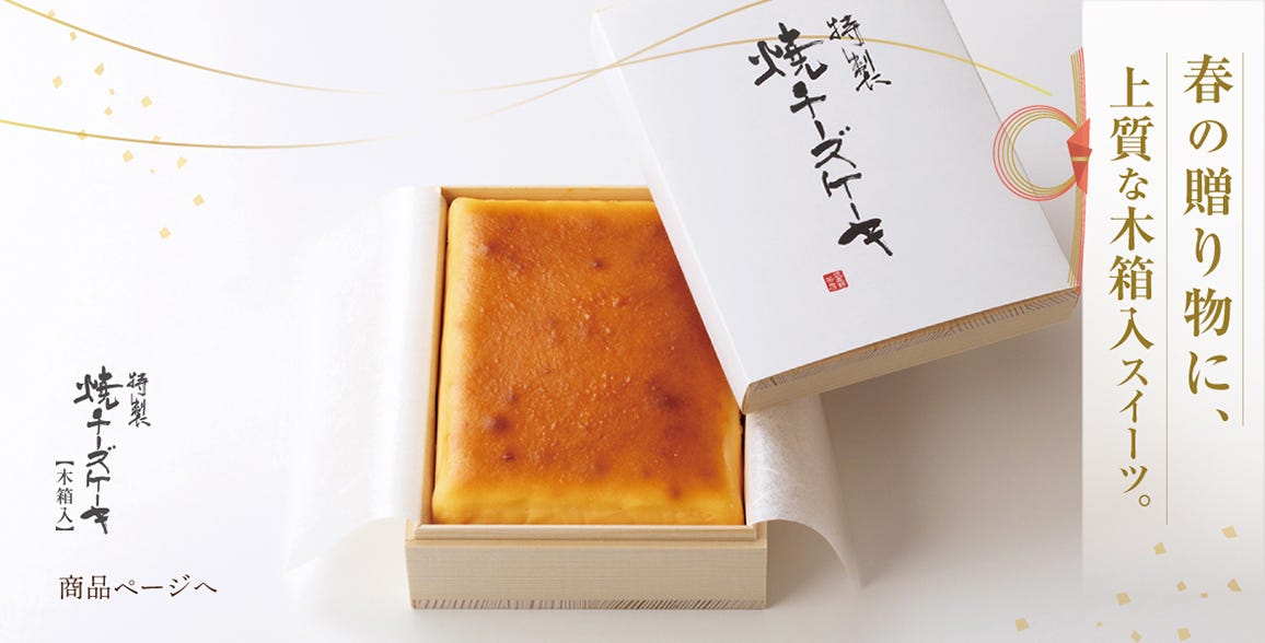 こだわったのは、“コクのある濃厚な味わい”でおなじみの、当店大人気商品、特製焼チーズケーキ【木箱入】!