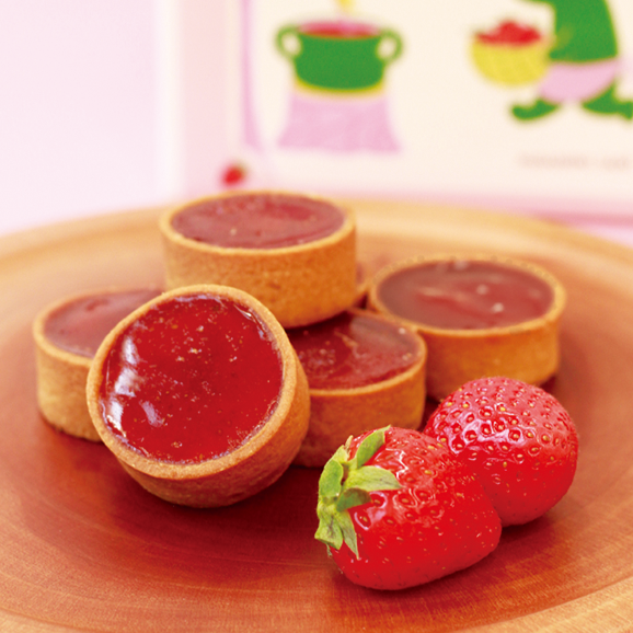 国産苺をふんだんに使用した苺ジャムをサクサクのタルトシェルに詰めたクッキーです。