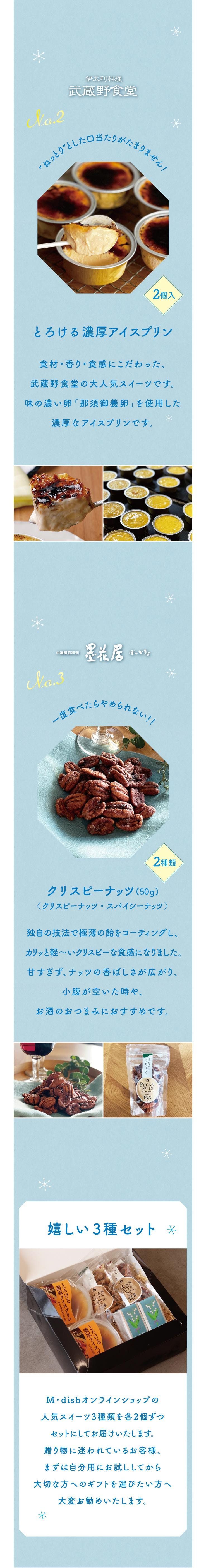 - ・チーズケーキサンド 〈プレーン〉×2個 ・とろける濃厚アイスプリン×2個 ・クリスピーナッツ×1個・スパイシーナッツ×1個
