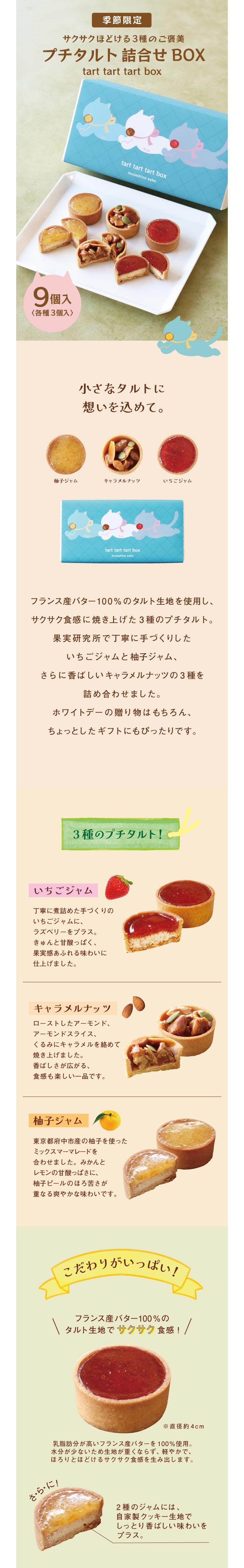 サクサクほどける3種のプチタルトの詰め合わせです。