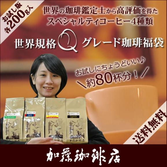 世界の珈琲鑑定士から高い評価を得たコーヒーの称号/Qグレードスペシャルティ珈琲豆4種類の飲み比べが楽しめます。使い勝手の良い200gサイズ!鮮度が高い間に飲みきれると人気上昇中!