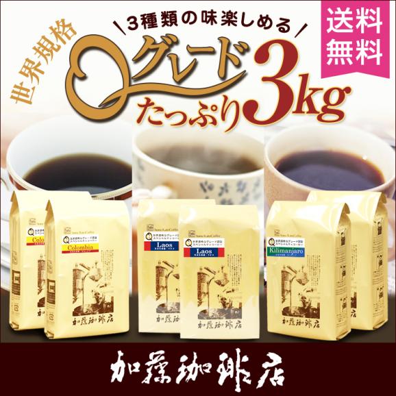 世界規格Qグレードスペシャルティコーヒー3種類各1kgずつ、合計3kg入り!選りすぐりの珈琲豆たっぷり約300杯分入りのとびっきりのコーヒーセットです。皆様で楽しいコーヒータイムをお過ごしください。