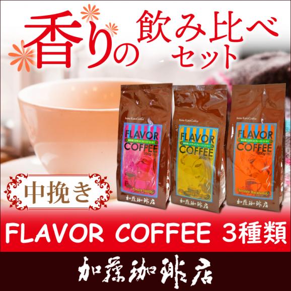 飲み比べに嬉しい3点セット。フレーバーコーヒーのお試しセットとしてもオススメです。