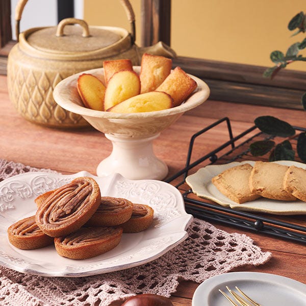 - 【フィナンシェ】3個、【マドレーヌ】3個、【焼き栗モンブラン】5個、【アーモンドクッキー】6個