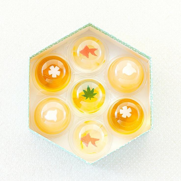 - (柚子、白桃、梅)×各2個、(夏みかん)×1個 合計×7個