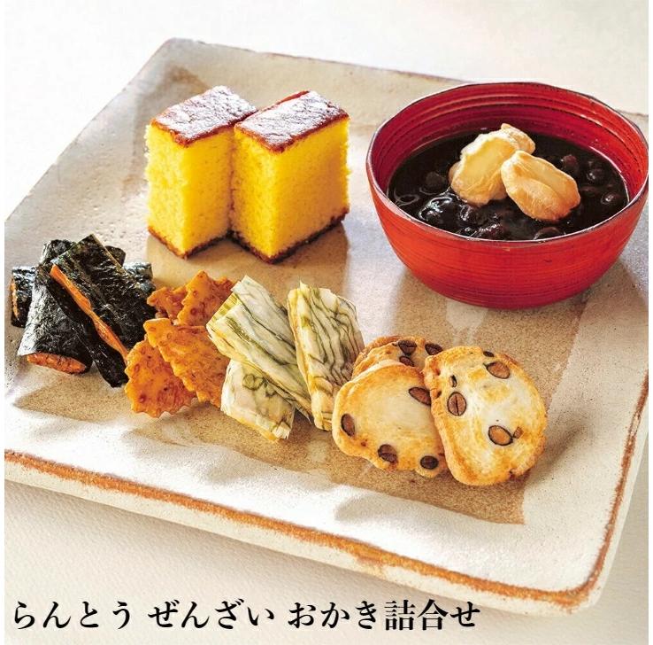 人気のらんとう1本、ぜんざい3個、おかき4袋を詰合せました。