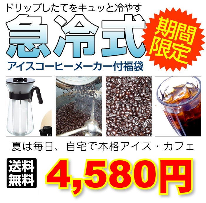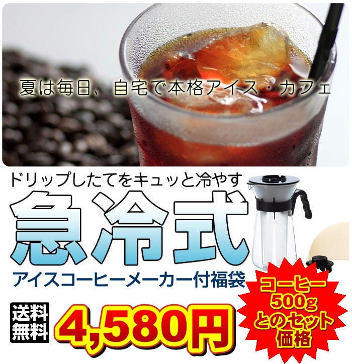 | ドリップしながら氷で冷やす、急冷式アイスコーヒーメーカーに、専門店のコーヒー豆がたっぷり500g(約50杯分)ついて、送料無料!