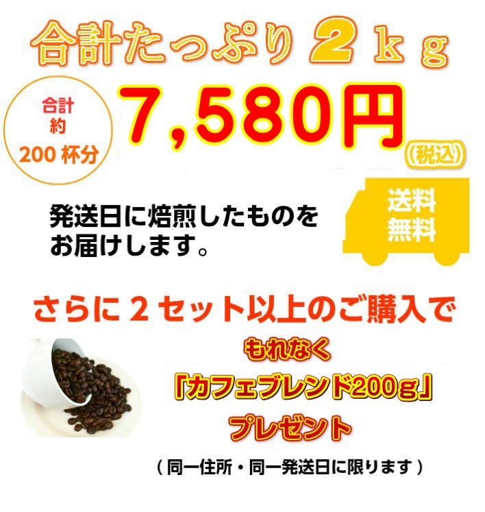 専門店のコーヒー豆8種、合計2kg!(約200杯分)が、7,480円(税込)!さらに送料無料!(沖縄離島を除く※沖縄・一部離島は送料600円)
