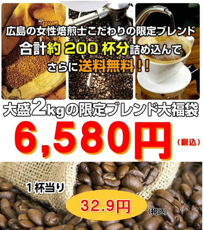 ■ブレンド絵下山×1kg(500g×2)約100杯分 ■安芸の厳島×1kg(500g×2)約100杯分 合計たっぷり2,000g! |