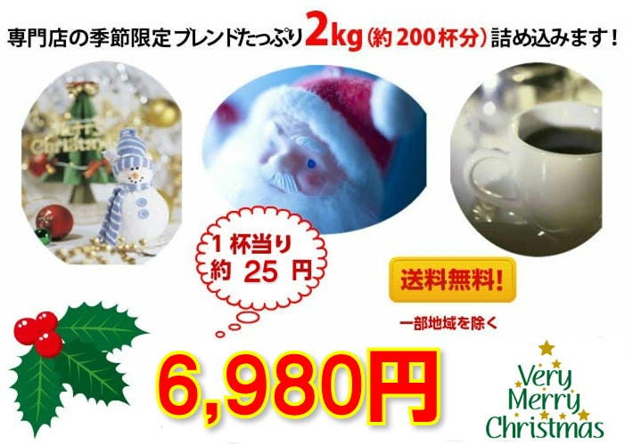 ■クリスマスブレンド×1kg(500g×2)約100杯分 ■サンタブレンド×1kg(500g×2)約100杯分 合計たっぷり2000g(約200杯分)! |