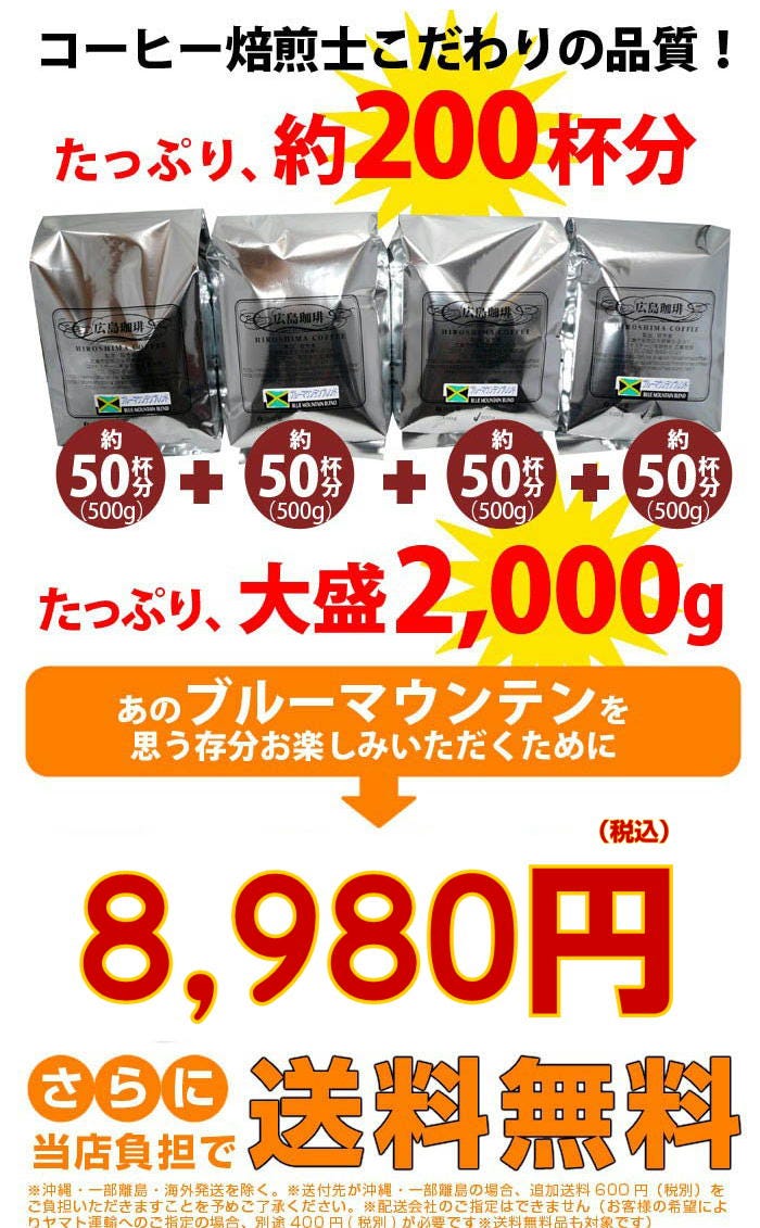 大人気のブルーマウンテンブレンド、1kgセット、1.5kgセットもあります!