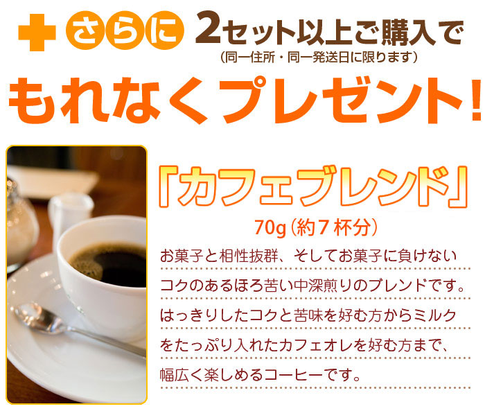 ☆☆☆ 返品について☆☆☆ ■お客さまの都合による返品 配達日のみ返品いただけます。 【返品の条件】返品の際は事前に必ずメール・FAXにてご連絡ください。 【返品送料】お客様負担でお願いします。 【連絡先】電話 082-889-0121(担当:藤得 光子)(受付時間平日9:00~18:00) メール h-coffee@globe.ocn.ne.jp ■商品の不良による返品 ご注文の品と違う商品が届いてしまった場合、商品の破損・傷みなどの品質上の問題があった場合には、商品到着の日から7日以内にご連絡いただければ、返品を受け付けます。 【返品条件】 返品をご希望のお客様は、配達日から7日以内にメール・電話にてご連絡ください。8日目以降の返品はできません。 【返品送料】商品の不良の場合は、弊社で負担いたします。 【その他特筆事項】 ・商品代金は、返送された商品が到着後、銀行振込により、返金します。 ・配送時と同様に梱包の上、返送ください。 【連絡先】電話 082-889-0121(担当:藤得 光子)(受付時間平日9:00~18:00) メール h-coffee@globe.ocn.ne.jp 【返送先】 郵便番号 736-0083 住所 広島市安芸区矢野東5-2-31