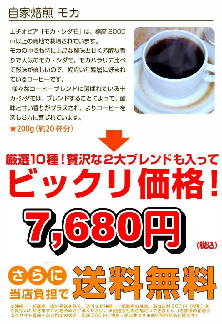 | ■ブルーマウンテンブレンド×200g(約20杯分) ■ハワイコナブレンド×200g(約20杯分) ■2025プレミアムブレンド×200g(約20杯分) ■安芸の厳島×200g(約20杯分) ■モーニングブレンド×200g(約20杯分) ■メキシコアルツーラ×200g(約20杯分) ■ブラジル×200g(約20杯分) ■マンデリン×200g(約20杯分) ■コロンビア×200g(約20杯分) ■モカ・シダモ×200g(約20杯分) 合計たっぷり2kg(約200杯分)! |